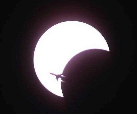 Η παρακάτω φωοτογραφία ελήφθη από την Μπανγκόκ της Ταϊλάνδης και δείχνει ένα αεροπλάνο να περνά κατά την μερική έκλειψη ηλίου.