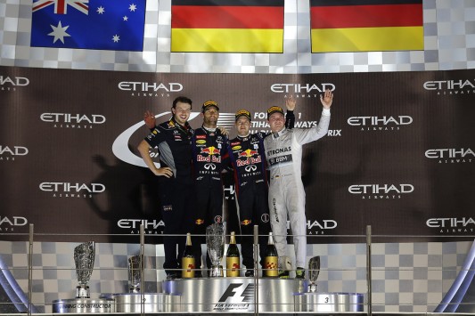 Ο Sebabstian Vettel εξασφάλισε από τον προηγούμενο αγώνα τον φετινό τίτλο, αλλά δεν λέει να σηκώσει το πόδι από το γκάζι. Ο Γερμανός κέρδισε και στο Grand Prix του Abu Dhabi, με τον Mark Webber να είναι δεύτερος και να προσφέρει ένα ακόμα 1-2 στην Red Bull.