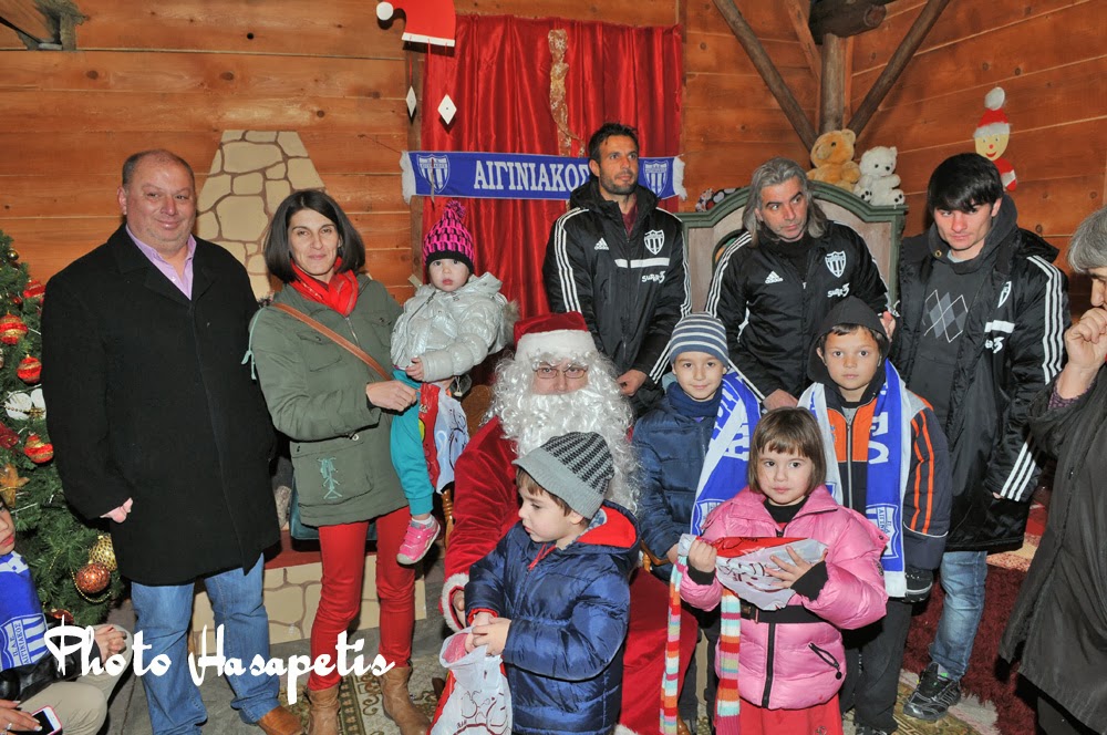 Αφού πρώτα οι οικοδεσπότες κέρασαν με διάφορα εδέσματα την ομάδα, στη συνέχεια οι παίκτες του Αιγινιακού, έγιναν αντικείμενο θερμών εκδηλώσεων από μικρούς φίλους με τους οποίους φωτογραφήθηκαν, ενώ αμέσως μετά μοίρασαν δώρα σε όλα τα παιδιά παρουσία του Αγίου Βασίλη,. Βέβαια, θα πρέπει να σημειωθεί ότι η αντιδήμαρχος Αθλητισμού του δήμου, κ.Ξανθούλα Βασιλειάδου, έκανε τις καθιερωμένες ευχές αφού ευχαρίστησε την ομάδα του Αιγινιακού για την παρουσία της, της ευχήθηκε πάντα επιτυχίες τονίζοντας, ότι η πορεία της κάνει περήφανους όλους του Αιγινιώτες, ενώ έδωσε και στον πρόεδρο της Π.Α.Ε. κ.Καρανικόλα Γιώργο ένα δώρο στο πνεύμα των ημερών. Από τη πλευρά του ο κ.Καρανικόλας ευχαρίστησε την αντιδήμαρχο για την πρόσκληση, αναφέροντας ότι όλοι οι ποδοσφαιριστές παραβρέθηκαν με πολύ μεγάλη διάθεση και αντάλλαξε ευχές για τις γιορτές των Χριστουγέννων. Έπειτα, αντιπροσωπεία των ποδοσφαιριστών μοίρασε δώρα στα παιδάκια, τα οποία φωτογραφηθήκαν με τα ινδάλματα τους και έφυγαν απόλυτα ικανοποιημένα .