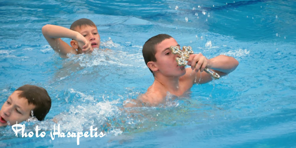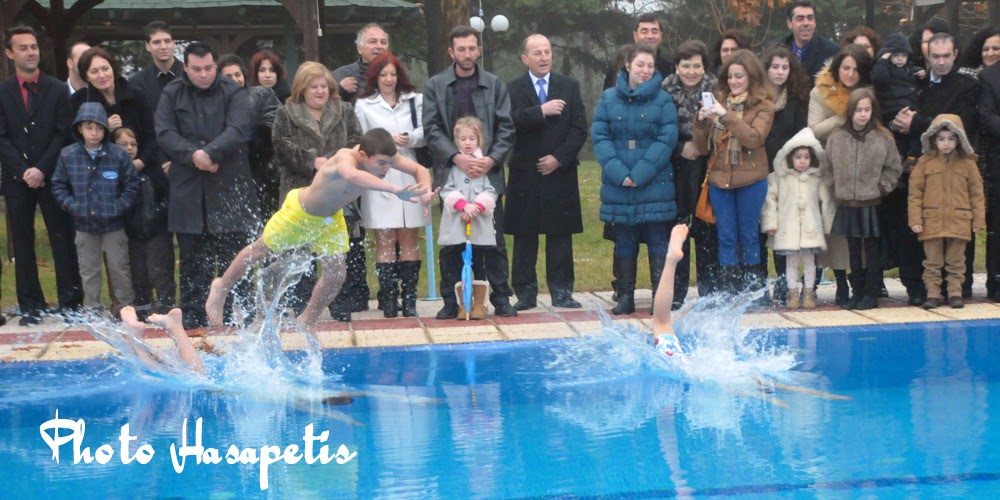 κατοίκων της περιοχής ο σταυρός έπεσε στη μεγάλη πισίνα όπου μικροί κολυμβητές αψηφώντας το κρύο και