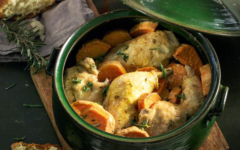 Μπλουμ αλλά όχι νερόβραστο, το κοτόπουλο μας μαγειρεύεται χρησιμοποιώντας μόνο ένα σκεύος.