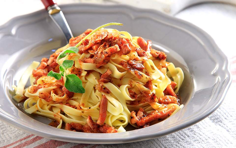 - 300 γρ. χοιρινή πανσέτα (όχι το αλλαντικό), σε λεπτές λωρίδες, πάχους περίπου 1 εκ.
